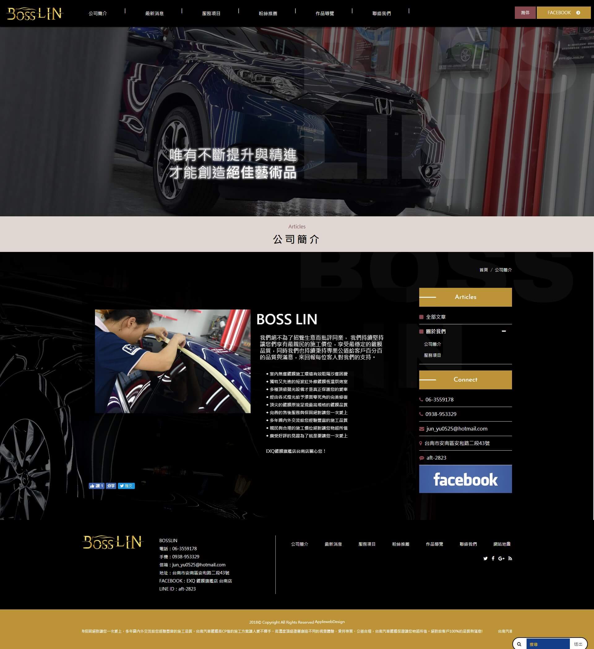 本網站以現代高端為主軸,黑金配色營造出專業、奢華且值得信賴的品牌氛圍。首頁 banner 以汽車細節特寫,強化品牌專業形象,讓訪客一進站即感受到精緻工藝與高品質服務。