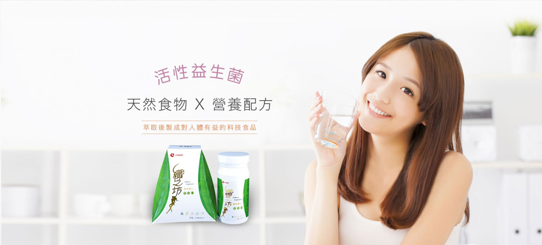 banner首頁圖結合人物與產品包裝,透過「天然食物X營養配方」的標語引導核心價值。字體選用上兼顧視覺親和與閱讀清晰,搭配CIS LOGO與花草插圖,呼應品牌定位。