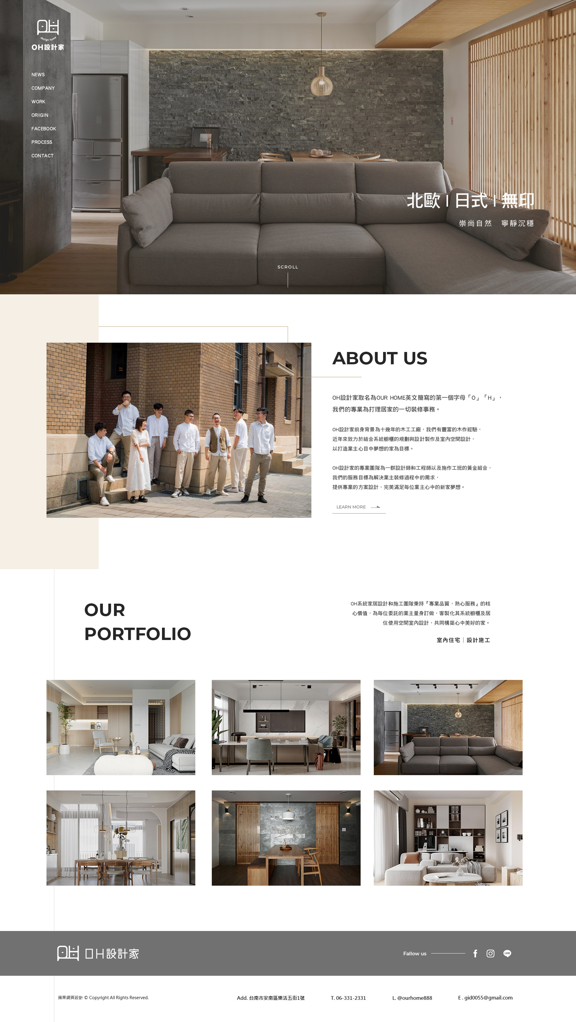 本案以「極簡現代」為核心風格,強調空間感與留白美學。整體網站以簡潔線條與大量留白構築視覺節奏,搭配室內設計實景圖,呈現出質感與品味兼具的設計語彙,打造一種輕奢、寧靜而專業的氛圍,展現品牌在空間設計領域的專業度與品味。